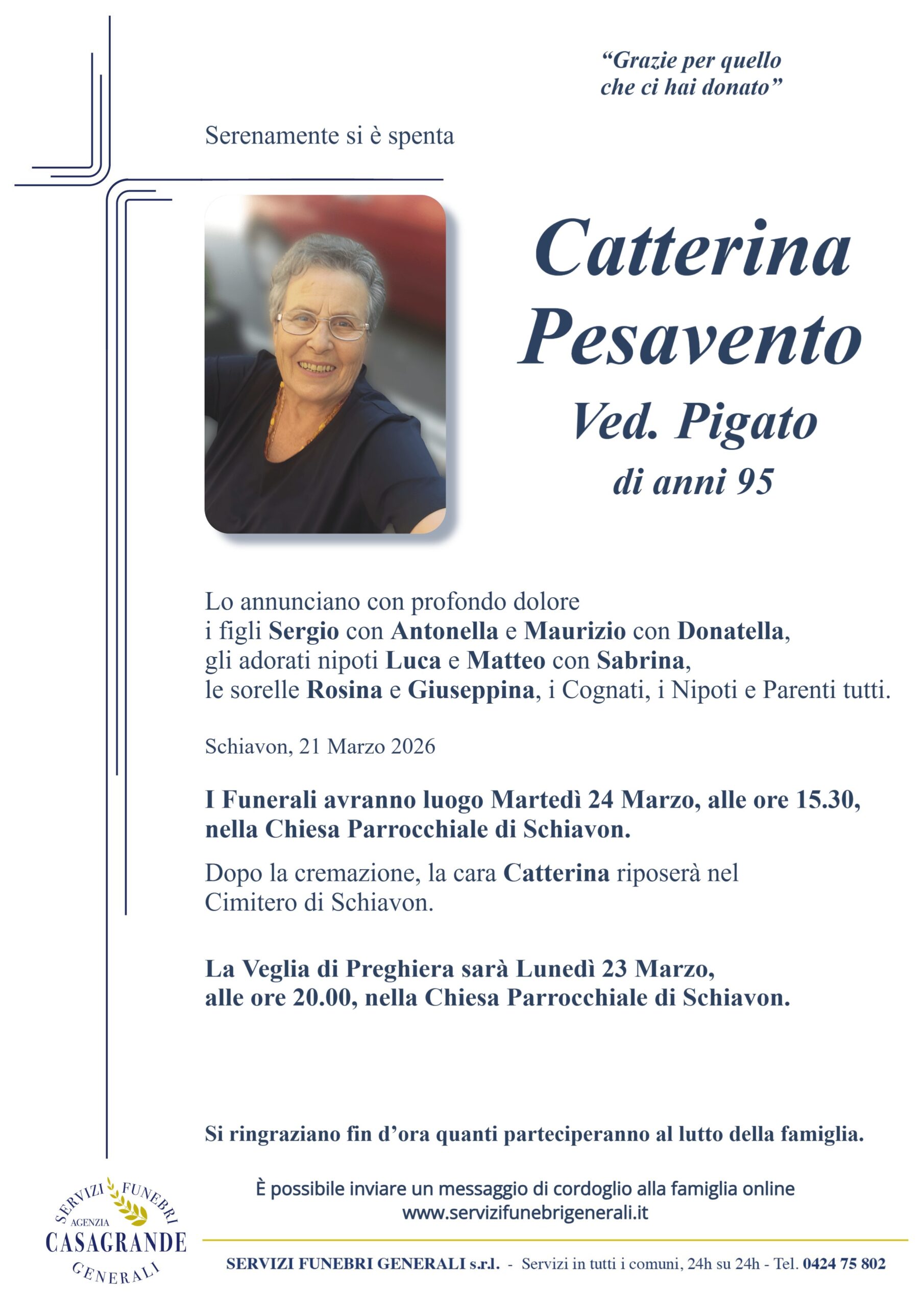 Compila i campi qui sotto scrivendo un messaggio.Sarà nostro compito consegnarlo ai famigliari del defunto. Confermo di aver preso visione e di accettare la Privacy Policy Δ TORNA AGLI ANNUNCI Casagrande | 11303 | 11304