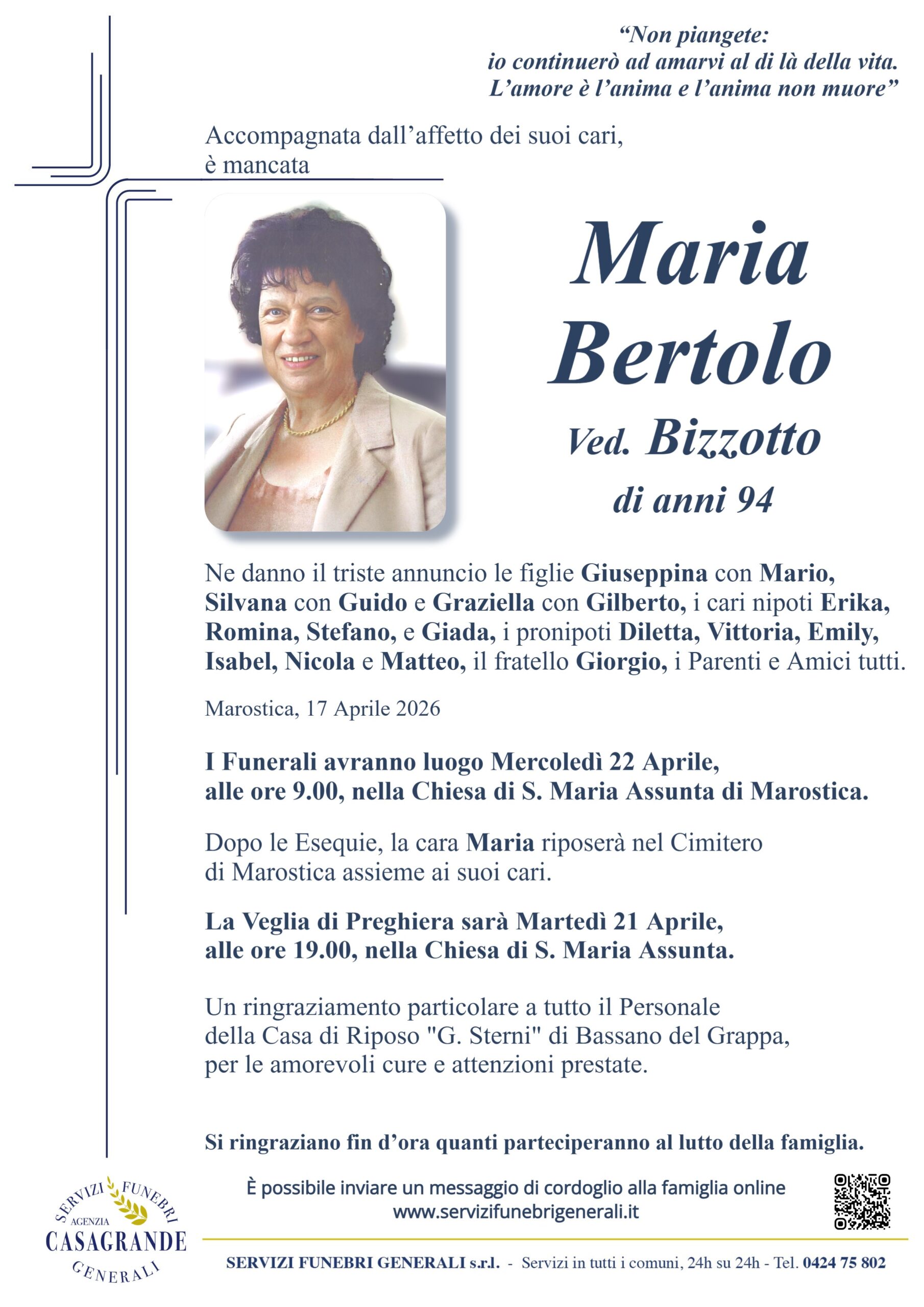 Compila i campi qui sotto scrivendo un messaggio.Sarà nostro compito consegnarlo ai famigliari del defunto. Confermo di aver preso visione e di accettare la Privacy Policy Δ TORNA AGLI ANNUNCI Casagrande | 11432 | 11433